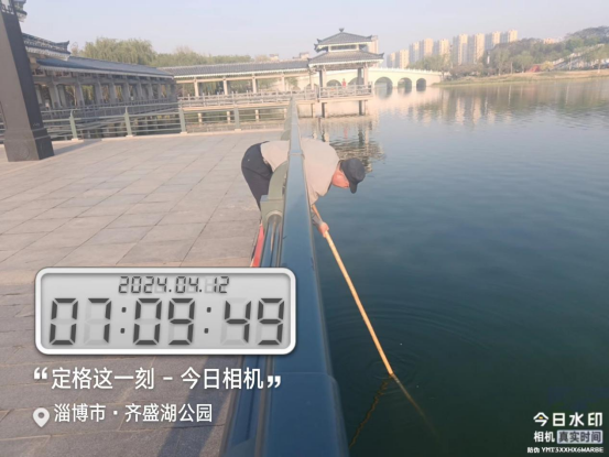 4月11日夜間20時(shí)26分,齊盛湖公園游客溫女士非常著急地走進(jìn)齊盛湖安保項(xiàng)目辦公室求助:“你好,我的手機(jī)掉落到湖里了,請你們幫我找找!”值班副經(jīng)理張振海一邊安撫溫女士的情緒,一邊詢問手機(jī)遺落水域區(qū)域,確認(rèn)后立即組織保安隊(duì)員打著手電,用打撈桿進(jìn)行尋找。